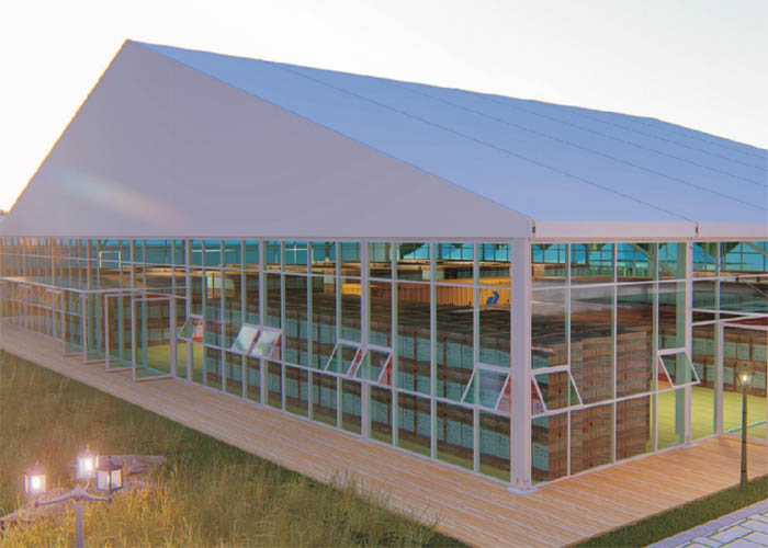 大型篷房外形優(yōu)雅、搭建靈活、安全環(huán)保、防雨、防曬、防霉、阻燃,可抗8-10級大風(fēng),運用廣泛?jiǎn)?,適用于民用派對、婚慶禮堂、商業(yè)大型活動(dòng)、會(huì )展慶典等。